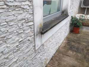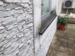 Non basta, purtroppo a causa della scarsa qualità di tanta pietra ricostruita che si trova sul mercato, è molto radicata la convinzione, ad esempio per la posa esterna, che la pietra naturale sia decisamente più affidabile di una “ricostruita”. Osserva queste foto. sono di una parete esposta a nord e realizzata nel 2008. Sono passati un bel po’ di anni da allora, guarda in che condizioni è la soglia in peperino e, affianco, quelle del rivestimento PETRA di Primiceri, montata sempre nello stesso anno La pietra naturale risulta ammalorata, aggredita da funghi e muschio. Il rivestimento di Primiceri è intatto. Vuoi lavarlo? Puoi prendere un’idropulitrice e sottoporlo a lavaggio con acqua in pressione: non succede assolutamente nulla, al più ritorna ad avere il colore che aveva appena montato. Magia? No, è il risultato della tecnologia che PRIMICERI impiega per la realizzazione dei suoi manufatti (rivestimenti e pavimenti). Queste foto sono più eloquenti di mille parole: