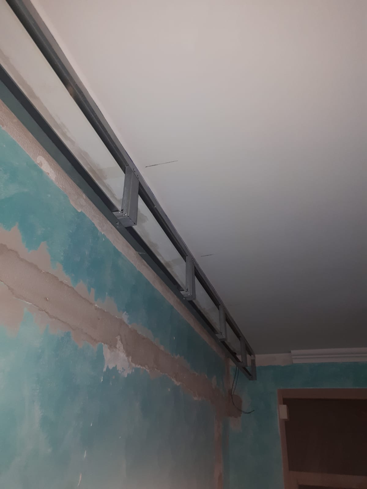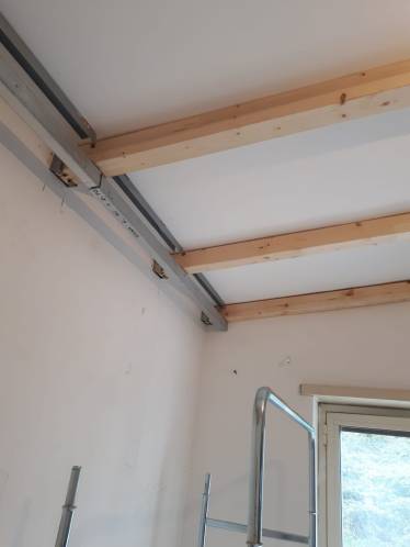 All’angolo superiore della parete con il soffitto, viene fissato sul soffitto un profilo per cartongesso (montante) ad una distanza di circa 10/15 cm dall’angolo. Su questo si avvita una striscia di cartongesso, legno o qualsiasi altro materiale. Si monta un angolare interno per montare una striscia (o profilo) di rifinitura per non vedere il bordo vivo della veletta da sotto.