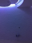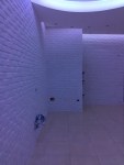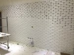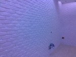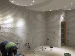 Ci siamo raccomandati all’infinito che facesse rispettare la consegna di non riempire troppo le fughe, proprio per non “appiattire” il gioco a rilievo del Mattone, che altrimenti, bianco su bianco, non avrebbe stagliato come dovuto, annullando l’effetto tridimensionale enfatizzato dalle luci (che vedrete, sono notevoli).