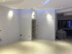 Adesso non è ancora del tutto finito, dovrà sicuramente finire di arredare questo bellissimo salone, impreziosito da un controsoffitto e da un’illuminazione davvero particolare.