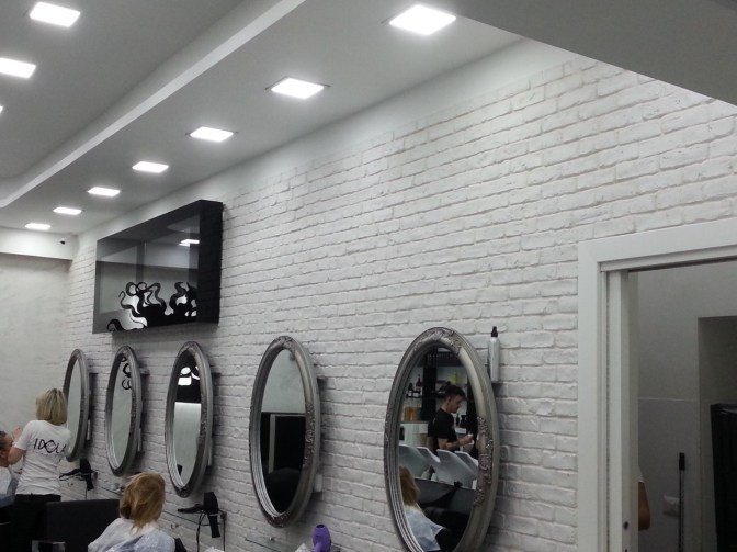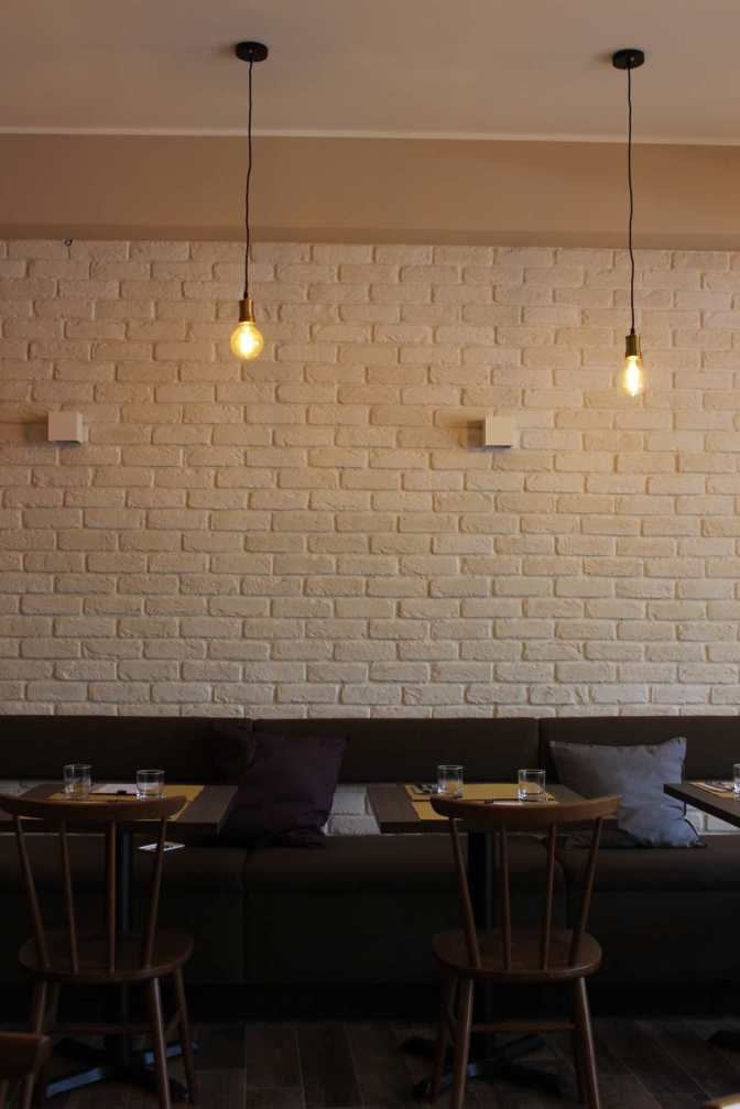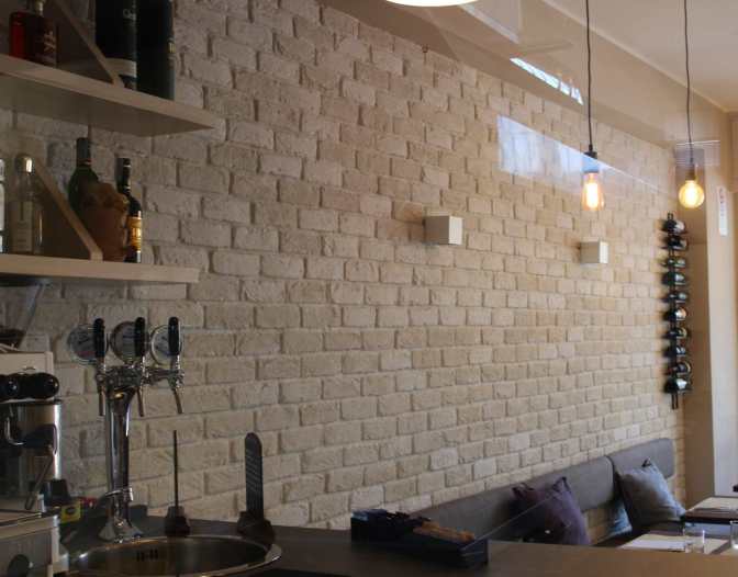 L’impiego di rivestimenti in pietra ricostruita negli esercizi pubblici sta dilangando. Sempre più spesso è possibile incontrare negozi, bar, ristoranti, parrucchieri che scelgono di arredare le pareti con superfici in Mattone. Spesso bianco.