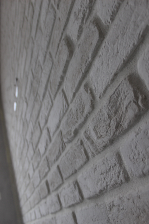 Consigliamo, come di consueto su questa tipologia di mattoni, lo stucco a “grana grossa” ovviamente bianco. E soprattutto, per valorizzare il modo di illuminazione, di tenere la stuccatura più bassa rispetto allo spessore del mattone,