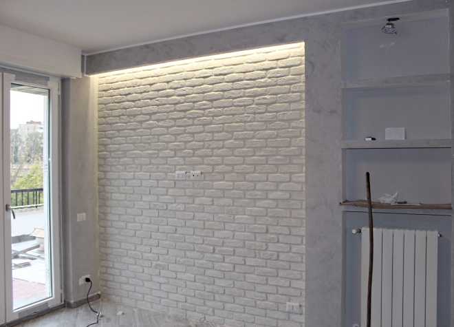 I punti di forza: Ottenere una superficie che è essa stessa già arredamento. Certo, sul mercato si trova di tutto per questo genere di rivestimenti. Quello che fa la differenza è la “credibilità”, la capacità di ottenere una superficie che si stenta a credere sia realizzata con “mattoni riprodotti”.