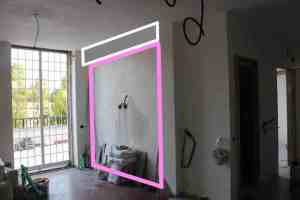 Viene realizzata PRIMA la veletta in cartongesso che avrà il compito di “alloggiare” dei tubi a LED che resteranno nascosti alla vista di chi sosta nell’ambiente. Inizia il montaggio.