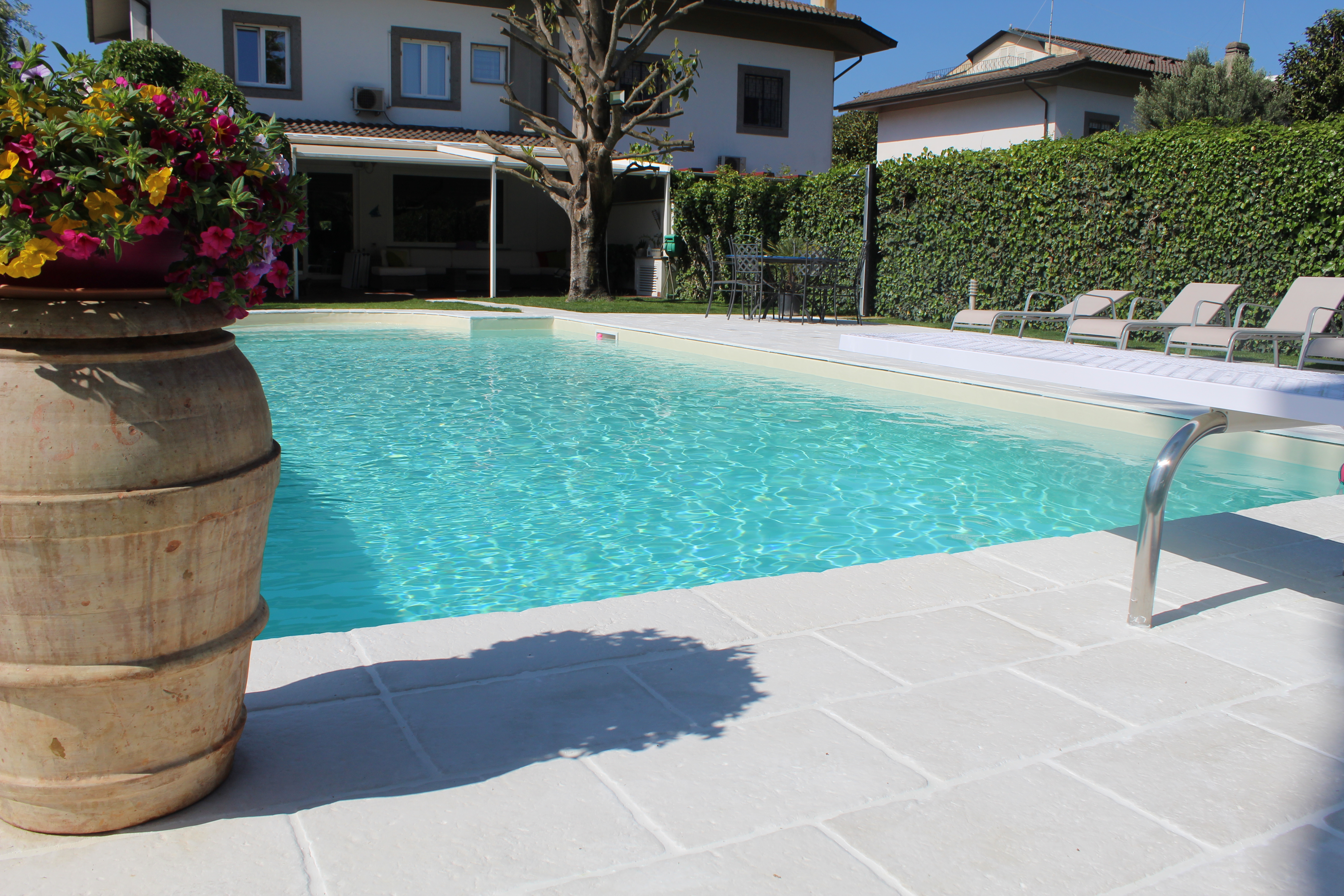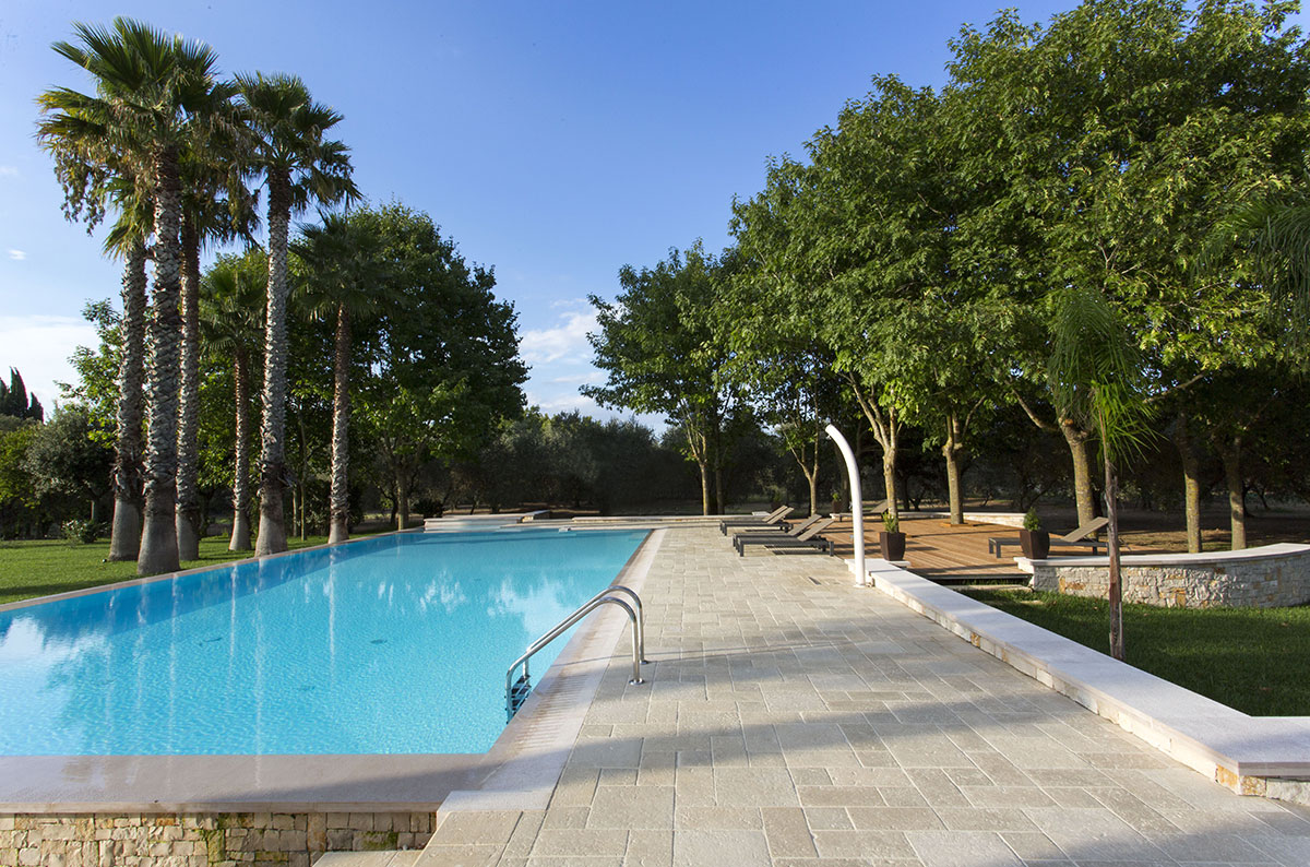 Ma è soprattutto per la capacità di trasformare, con il fascino della pietra consumata dal tempo, i piani piscina in un ambiente che profuma insieme di antico, eleganza e glamour a piene mani.