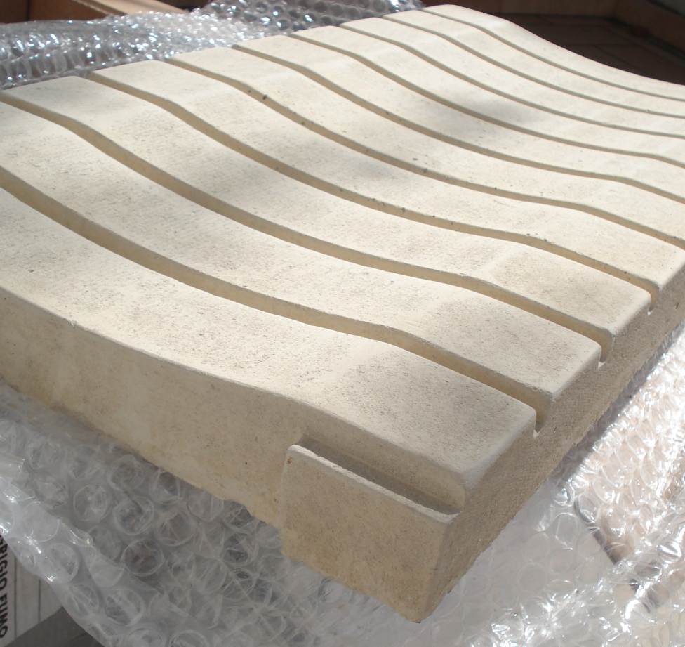 Si tratta di un elemento che si può posare a secco, per consentire la manutenzione delle canaline di raccolta, cosi come posizionato a colla come elemento di finitura. La versione che si può rimuovere, per evidenti ragioni di sicurezza è armata con rete in fibra di carbonio che assicura in caso di rottura accidentale che il pezzo resti integro, evitando di procurare danni