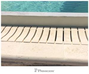 Completano le superfici anche una ricca gamma di accessori sempre made in Primiceri. Si va dal classico bordo o dalle soluzioni a “piano-continuo” dove sembra che la pavimentazione finisca nell’acqua, senza soluzione di continuità. E ancora le griglie per le soluzioni “a sfioro”, atte a nascondere le canaline di drenaggio, o come le recentissime soluzioni “a sottosfioro”.