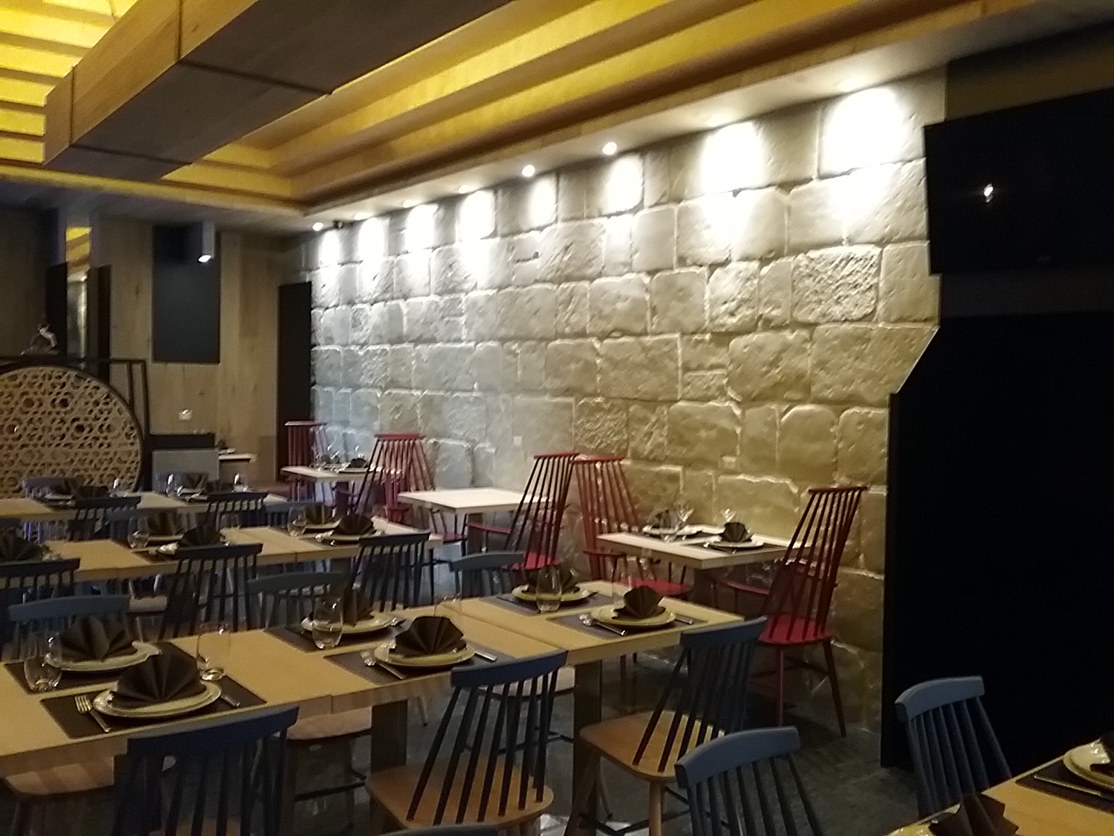 L’aspetto fedelmente riprodotto delle pietre consumate dal tempo aiuta in questo senso ammantando di calore e rendendo meno anonimo o scontato ogni spazio.