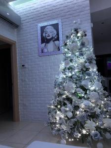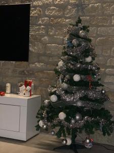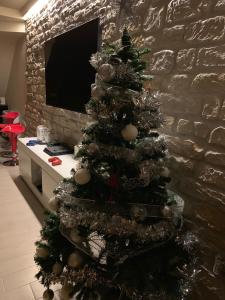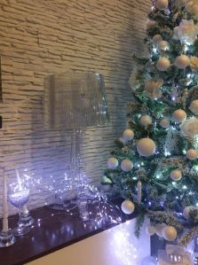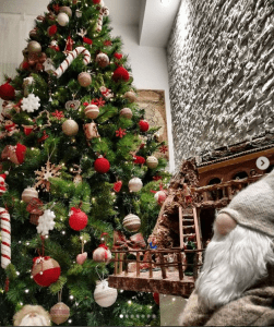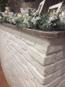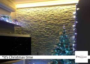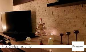 un altro ambiente rivestito con MATTONE BIANCO PRIMICERI, nel quale campeggia uno splendido albero di Natale…se ti piacciono le superfici in Mattone a vista le trovi qui.