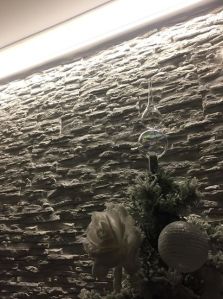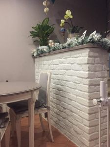 E ancora in tema di Mattoni, che dire di questa ambientazione? Un festival di decorazioni appoggiate su un muretto (qui è stata usata come base una tavola montata su un muretto capo-scala rivestito in Mattone bianco):