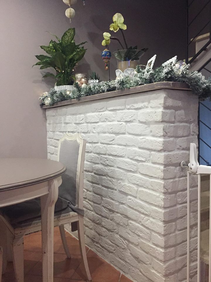E ancora in tema di Mattoni, che dire di questa ambientazione? Un festival di decorazioni appoggiate su un muretto (qui è stata usata come base una tavola montata su un muretto capo-scala rivestito in Mattone bianco):