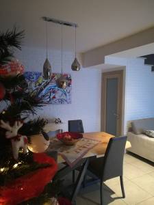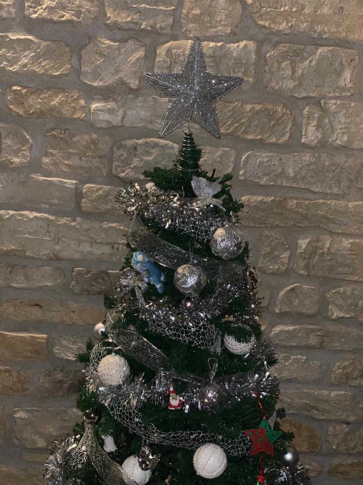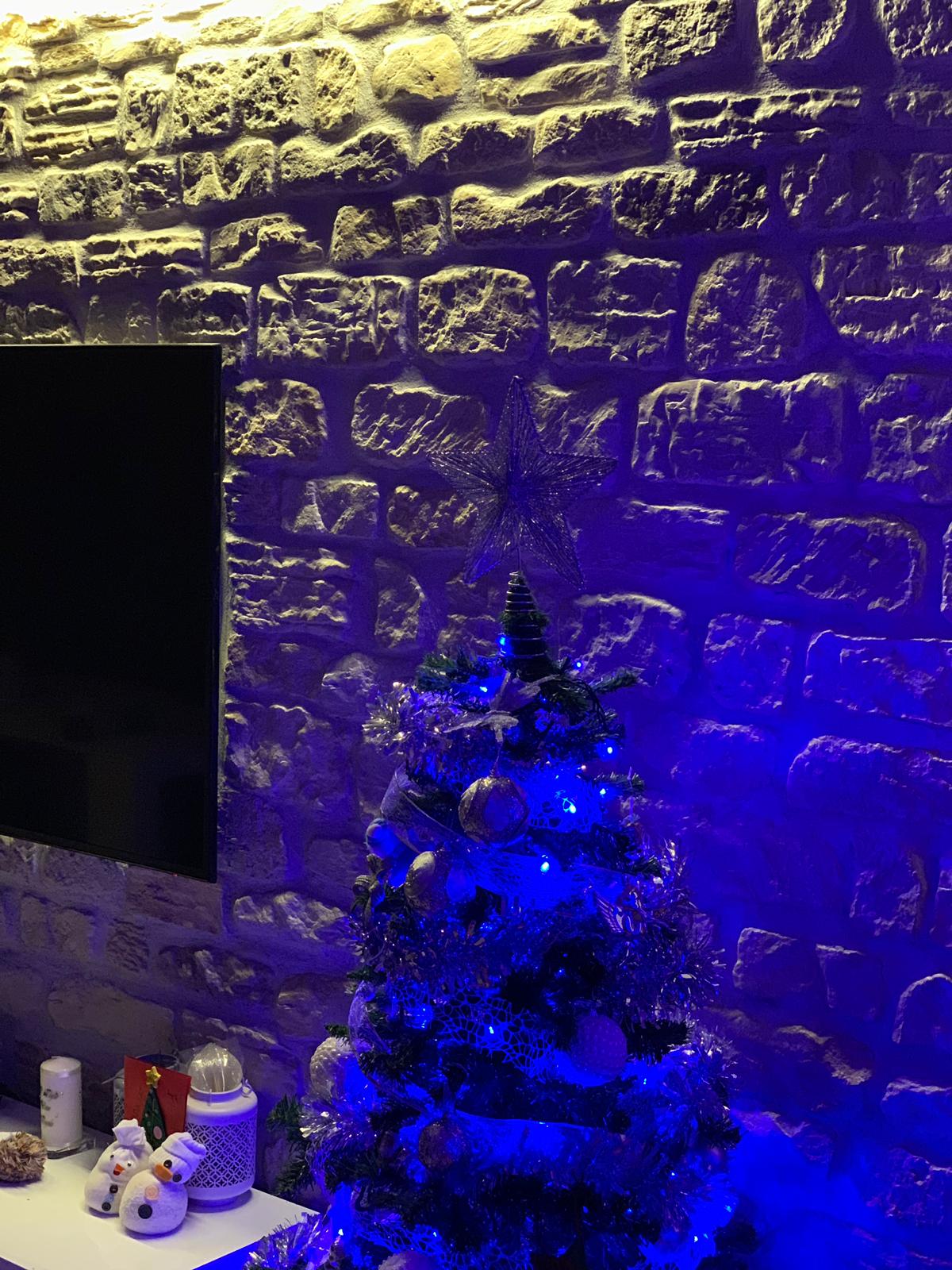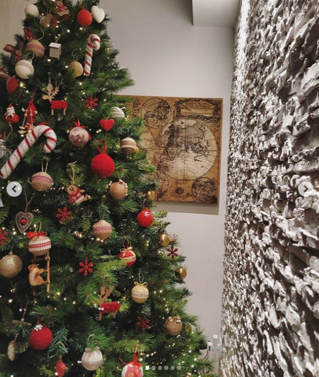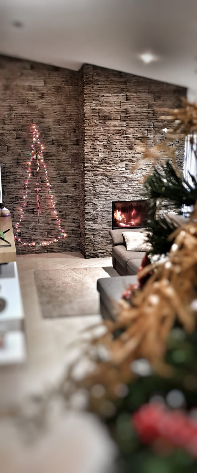 un altro ambiente rivestito con MATTONE BIANCO PRIMICERI, nel quale campeggia uno splendido albero di Natale…se ti piacciono le superfici in Mattone a vista le trovi qui.