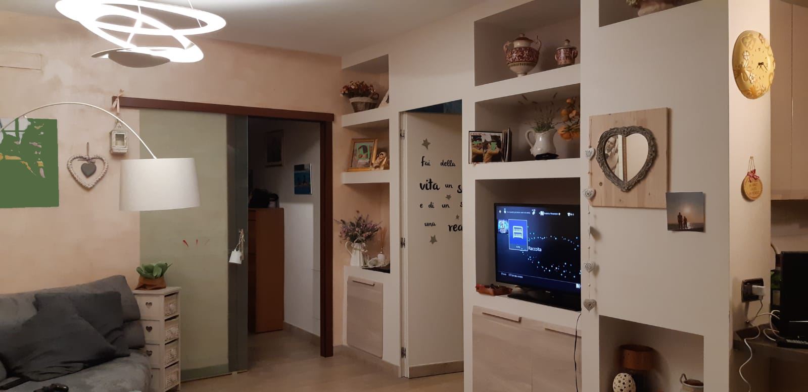 Se ci segui da un po’ avrai capito che siamo innamorati delle pareti rivestite illuminate da “sorgenti di luce nascosta” (qui, se vuoi, capisci perché)…e studiando la situazione è stato facile intravederla già, dello stesso spessore dell’ultimo traverso dell’armadio che insiste sulla destra, per dare anche una “continuità” estetica (la veletta contenitiva dei tubi LED è stata infatti pitturata con lo stesso colore, per restare “fedeli al tema” di dimensioni e di cromie).