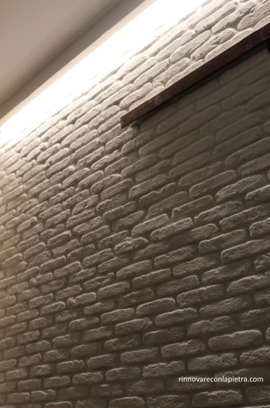 Il beneficio? Vuoi mettere la sensazione di “credibilità”di una parete cosi rivestita? Nulla di eguagliabile dal gres, dal laterizio stesso, figuriamoci dal gesso. Non hai quella sensazione di “seriale”, finto, “tutto uguale” che ti propone chi dispone di un numero limitato di superfici.