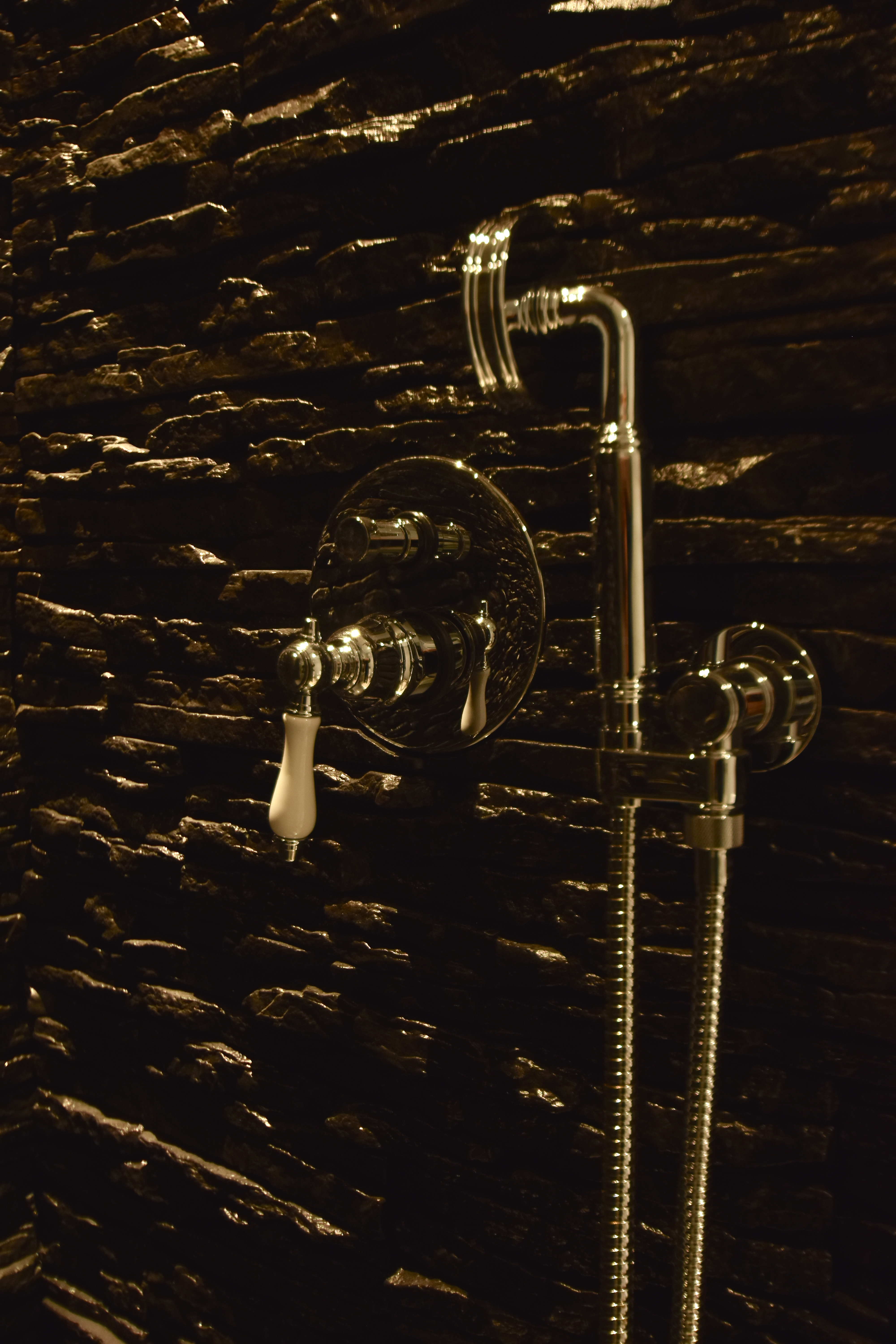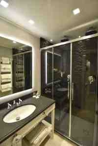 Può esserci il caso, e infatti si è verificato, che il punto di colore dei rivestimenti, che pure (se vai qui lo vedi anche tuse vai qui lo vedi anche tu) sono proposti in tante cromie già da fabbrica, spesso volutamente stonalizzate per aumentarne la somiglianza con la pietra naturale, si desideri ottenere un altro colore. E’ stato il caso di un albergo che ha deciso di rivestire con PETRA le cabine doccia di cinque camere deluxe. In questa occasione sono stati impiegati dei prodotti che hanno “virato” il punto di cromia naturale (di fabbrica) dal grigiofumo ad un nero lucido dall’aspetto quasi “onicizzato”. Il risultato? Spettacolare.