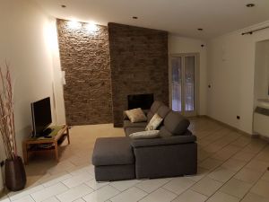 Tipica soluzione anche questa. Il rivestimento a mattone esalta il camino dandogli una veste “informale” molto apprezzata per la sua eleganza e in grado di abbinarsi molto bene con qualsiasi tipo di arredamento.