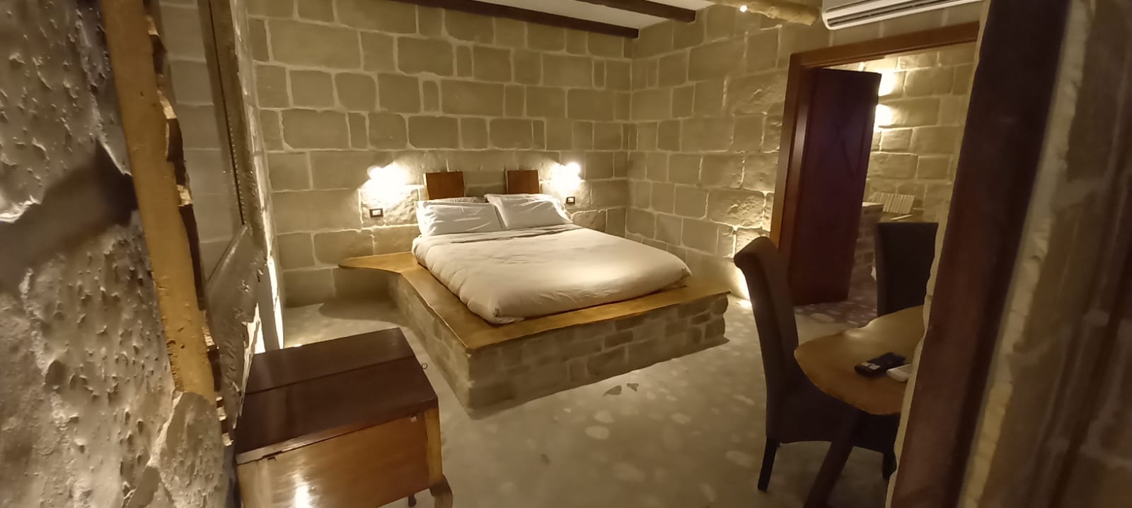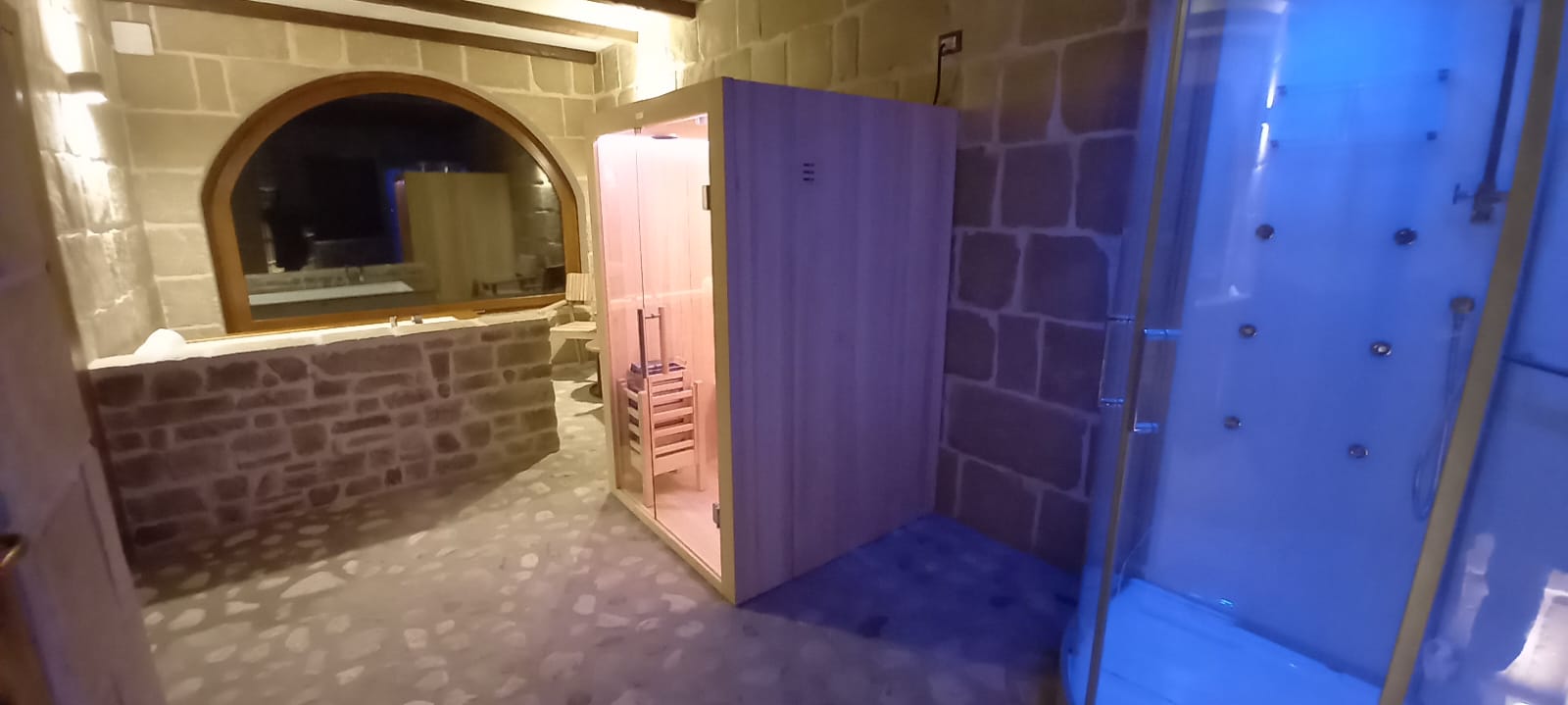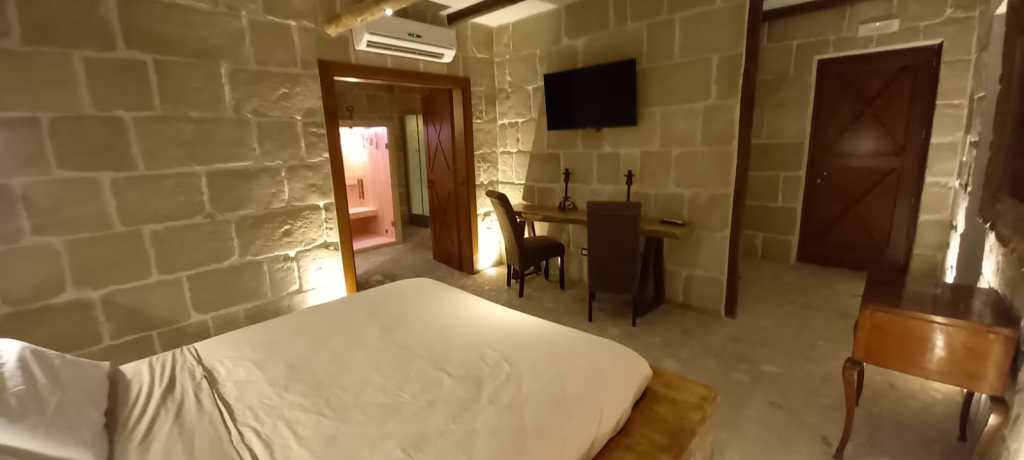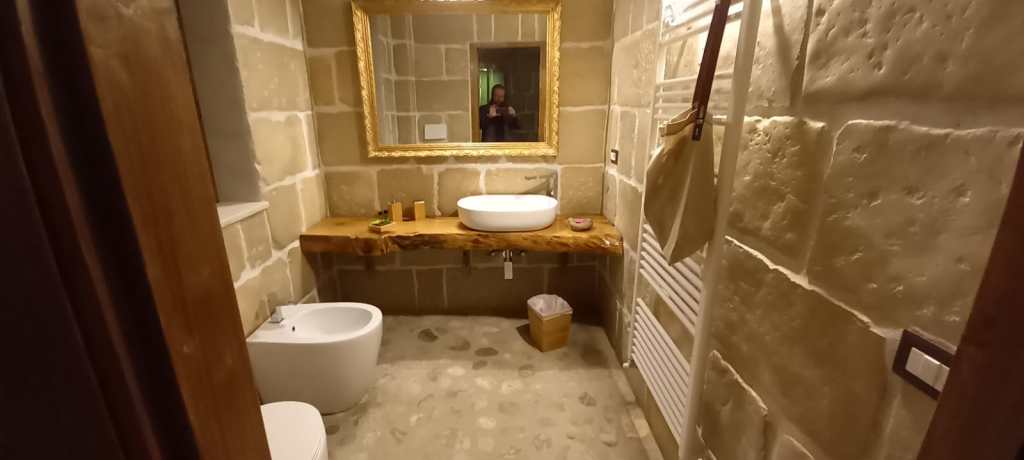Abbiamo trovato deliziosa la scelta di arredarla con un forte orientamento al mix di elementi “antichi e moderni”, per creare quei contrasti che sono molto ricercati da tanti progettisti. In breve, un impronta molto “spartana”, con forte richiamo alla materia, sassi (con i quali sono pavimentati quasi tutti gli ambienti), legno (per mobili e infissi) e quel tocco di glamour rappresentato dalla originale presenza della SPA privata in alcune camere di questo piccolo gioiellino.