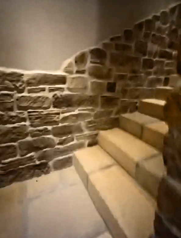 Qui abbiamo, nel pavimento dei bagni e dei corridoi a pavimento la Vecchia Chianca. Per le scale è stato scelto l’elemento SCALINO (un pezzo speciale che tiene insieme pedata ed alzata, qui se vuoi saperne di più: ).
