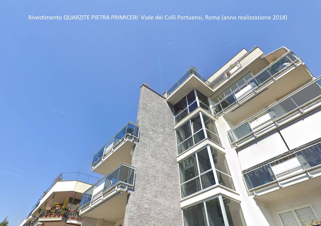 (parete realizzata 2007, foto 2018, Petra Primiceri e Pietra naturale Peperino della soglia)