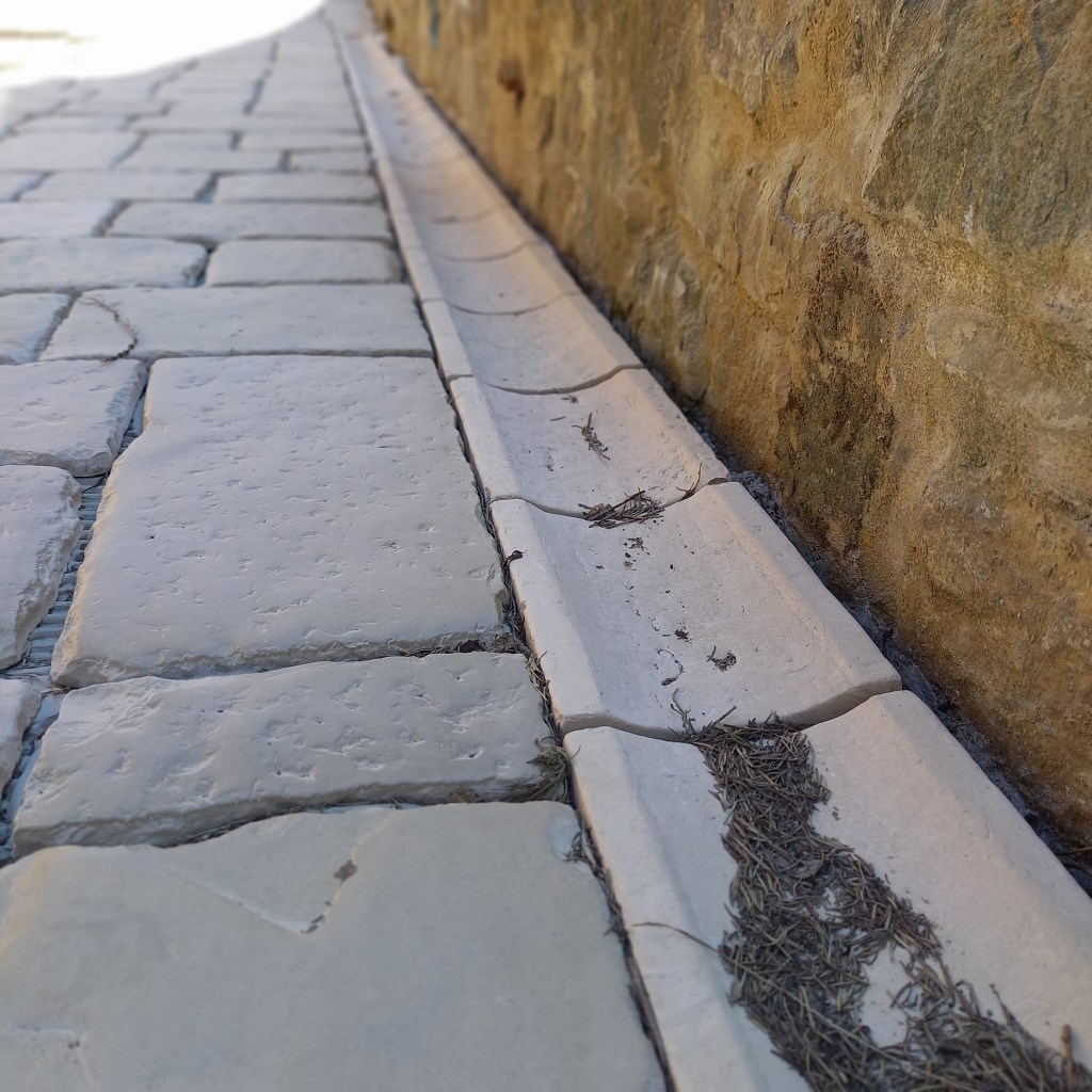 Se stai facendo un viale, una soluzione sensata è realizzarlo a schiena d’asino, cioè con una leggera pendenza che dal centro accompagni l’acqua verso destra e sinistra.