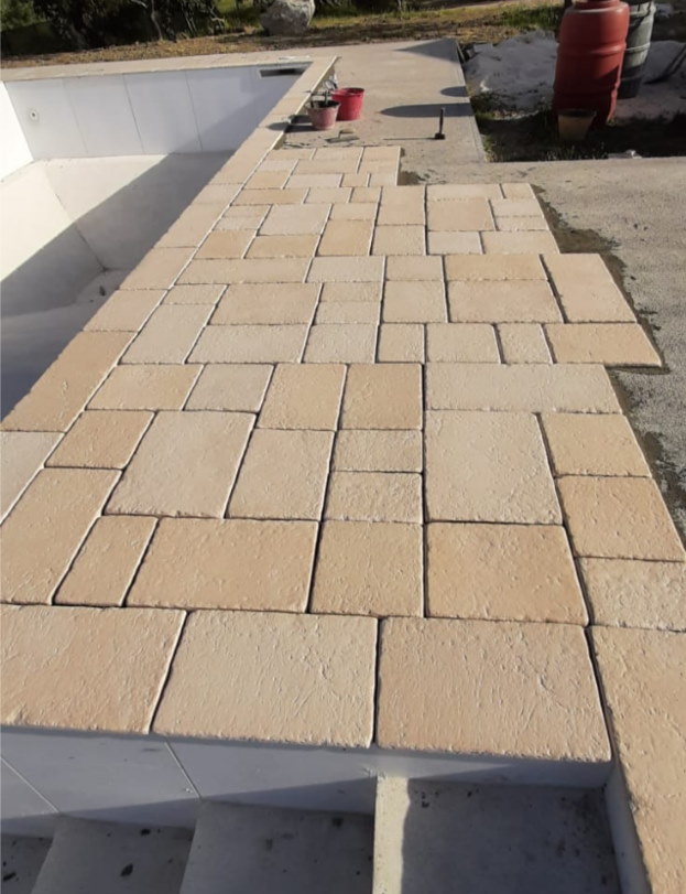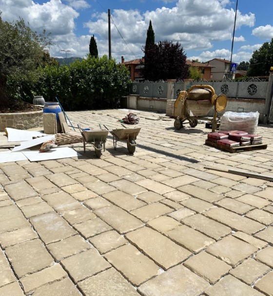 Si sterra, si crea un fondo con doppio strato di inerti, si costipa bene, e poi si completa con una sabbia polimerica che satura le fughe. Se serve, si mette anche un telo TNT per limitare gli infestanti.