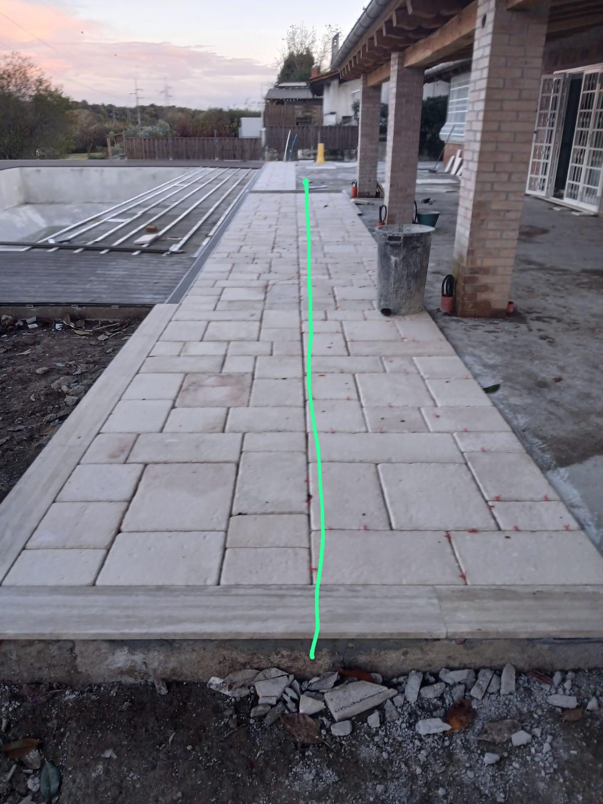 Se stai facendo un viale, una soluzione sensata è realizzarlo a schiena d’asino, cioè con una leggera pendenza che dal centro accompagni l’acqua verso destra e sinistra.