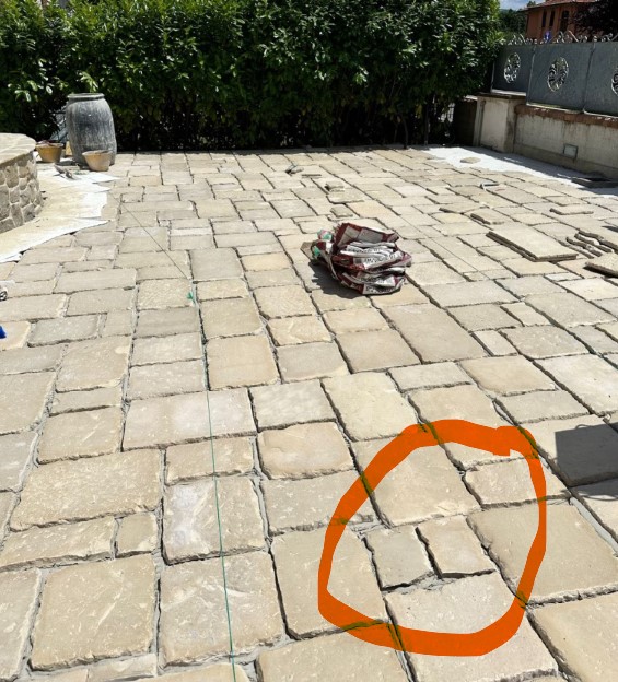 Nel caso di materiali molto irregolari, tipo Vecchio Basolato, meglio ragionare su prodotti adatti, come una malta fibrata antiritiro, piuttosto che intestardirsi con stucchi fini che lì c’entrano poco.