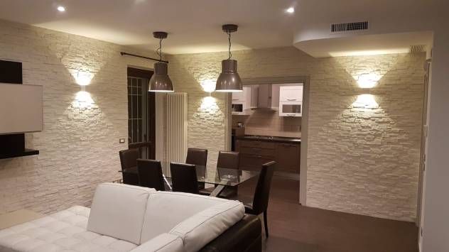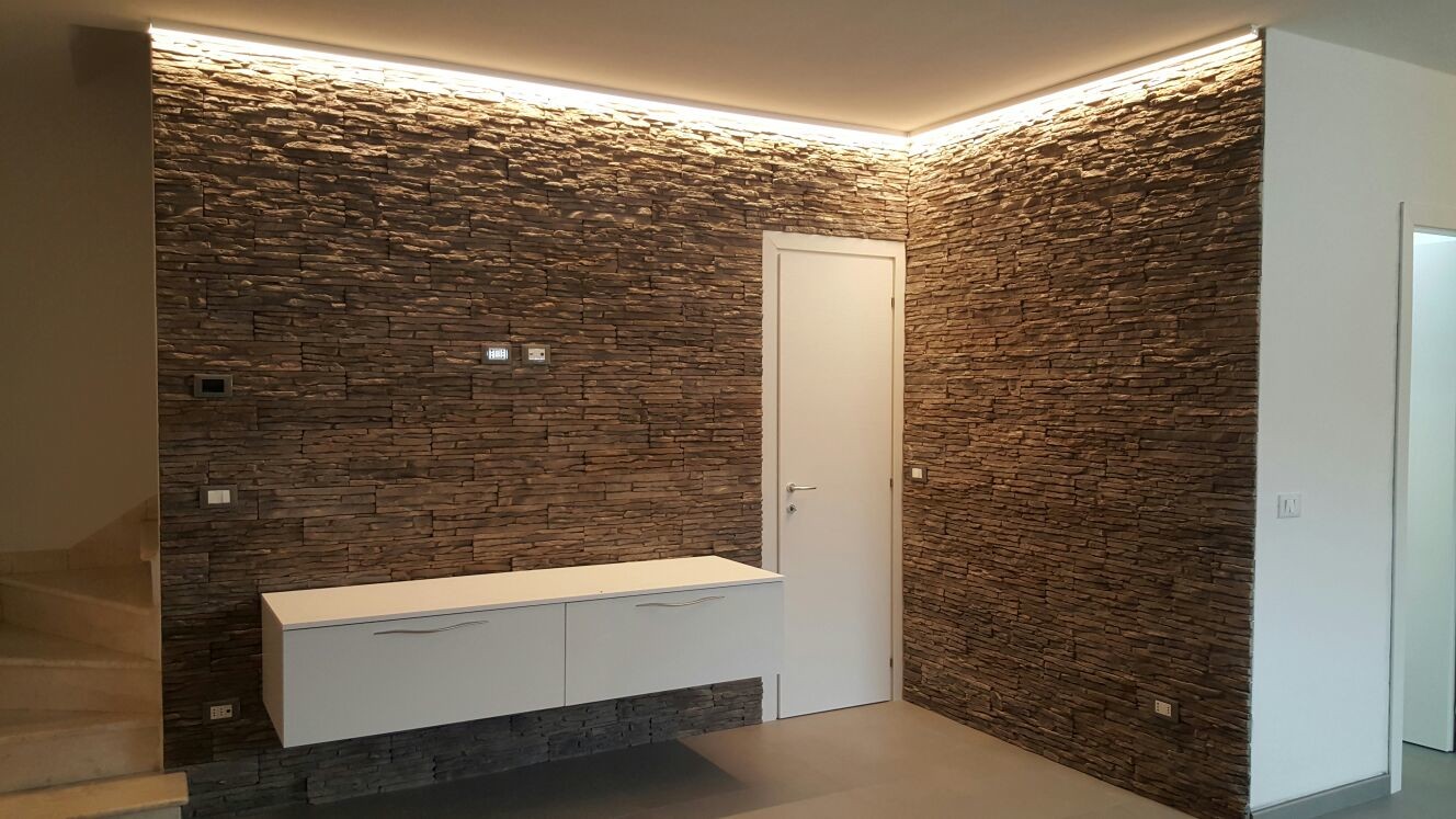 Quale che sia il rivestimento scelto, la cosa fondamentale è illuminarlo. La luce, proiettata da diffusori che si preferisce vengano posati in alto, ha il compito di enfatizzare la parete, “muoverla” come dicono gli Architetti, favorendo insieme sia la sensazione di ampiezza dell’ambiente, sia esaltando il rivestimento facendo perno proprio sulla sua capacità di essere “elemento d’arredo”, alla stessa stregua di un divano ultra-comfort o di un mobile “a giorno”. (vai all’articolo sull’illuminazione)