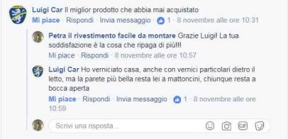 A casa di Erika, che ha arredato con gusto un appartamento, sia nella zona dietro il divano, cosi come nel disimpegno, dietro una specchiera, e in bagno dove il gioco a contrasto con il mosaico della cabina doccia in muratura si sposa alla grande con il Petra grigio-fumo. “Le mie amiche me lo invidiano” si percepisce che dice, sebbene l’audio non sia dei migliori.
